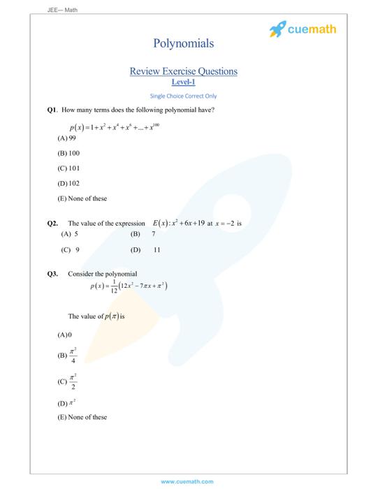 In short a polynomial is an algebraic expression which has two or more algebraic terms. Constants like 3 or 523 Variables like a x or z. Polynomial of degreenis a function of the form fx anxnan1xn1a2x2a1xa0.