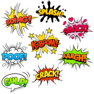 Create your own comic strip by inserting onomatopoeia words into the speech bubbles click on the image below for a printable copy.