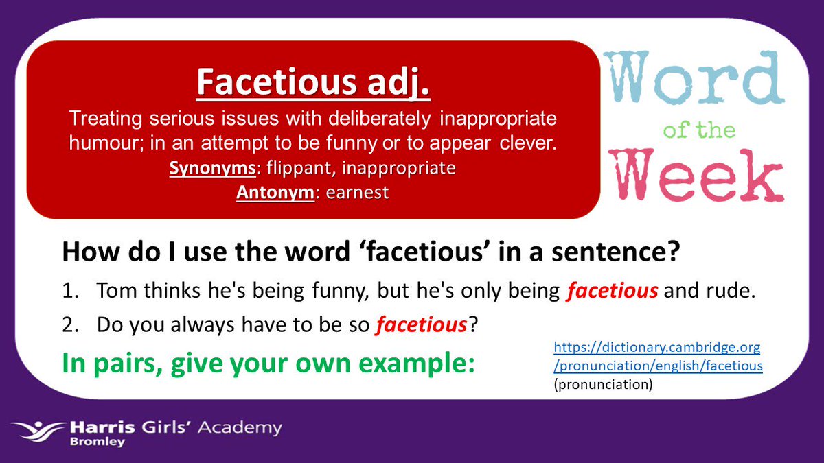 Harris Bromley On Twitter Word Of The Week Is Facetious Different Year Groups Will Also Delve Into Different Words Selected From The Reading Books This Term Https T Co 6ff5kqjzu5