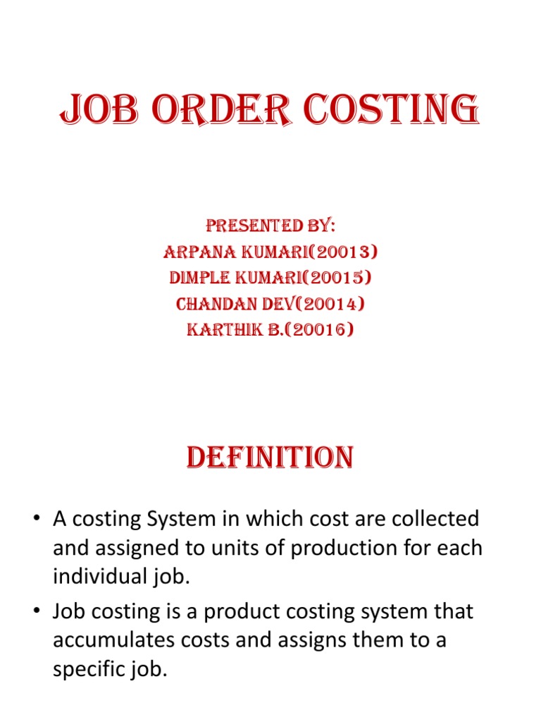It is also necessary for producing any product. Job costing is otherwise called as job order costing job cost accounting specific order costing production order costing job lot costing and lot costing. Costing is a type of accounting that works to assess an organizations total cost of production by looking at both variable and fixed costs during each step of production.