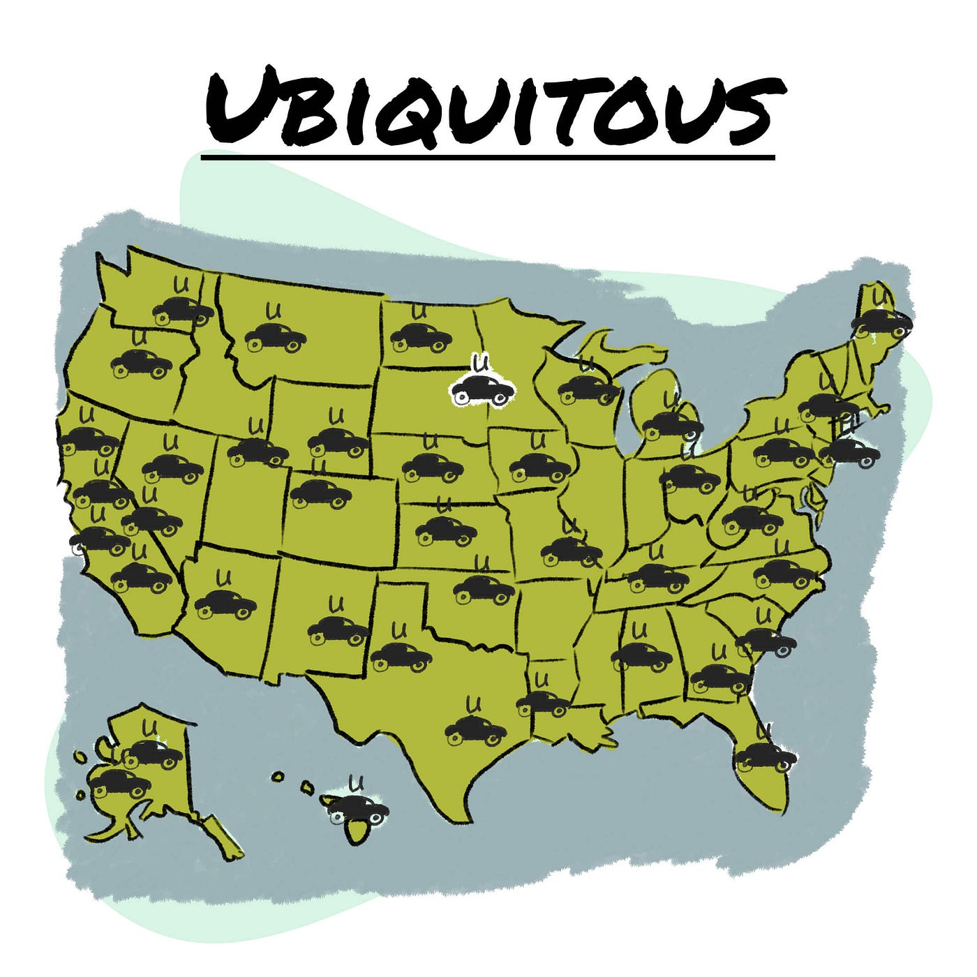 Ubiquity unambitious unambiguous unambiguously. An example of ubiquitous is people using the Internet. In contrast to desktop computing ubiquitous computing can occur using any device in any location and in any format.