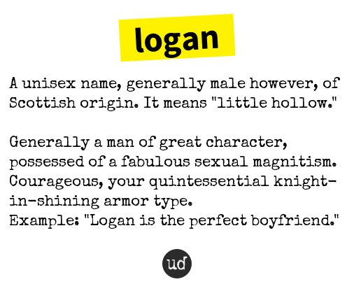Urban Dictionary On Twitter Logan A Unisex Name Generally Male However Of Scottish Origin Https T Co Myoddc2gsr
